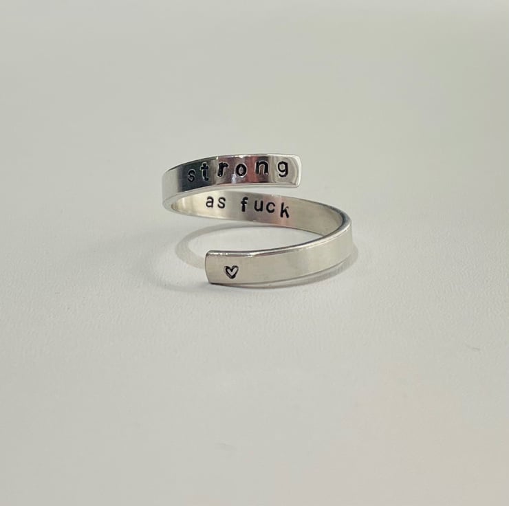 Aluminium wrap ring stamped with ‘strong as fuck’