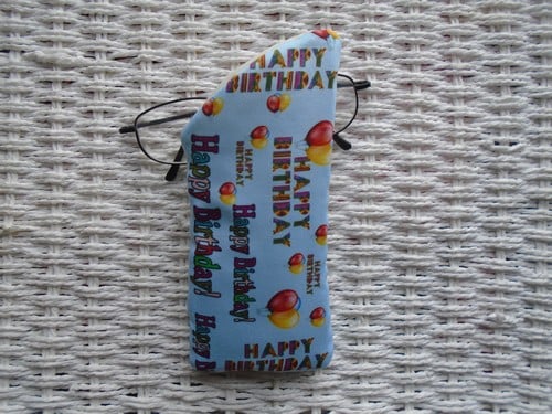 Unique handmade double sided lined and padded glasses case approximate size 17 cm x 7 cm suitable for regular size glasses or ready readers. Glasses not included!