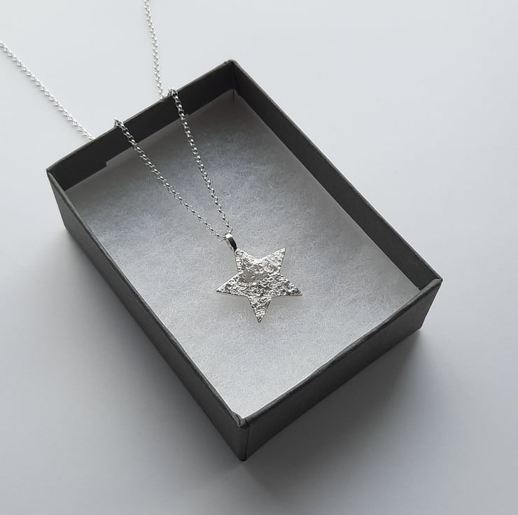 This textured Silver Star Pendant was made to help raise awareness for global warming. Beautifully handmade and with a nice weight to it, this pretty, sparkly pendant is definitely not just for Christmas!