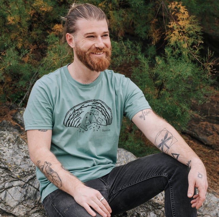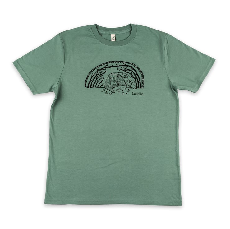 Designed by me in Clevedon (Someset) and hand screen printed in Somerset using eco-friendly water based inks that contain no plastics or chemicals. Inspiration for this T-shirt came from the idea of hibernating over the winter of 2020!