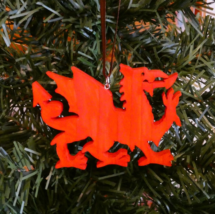 This unusual Red Welsh Dragon Christmas ornament has been handmade from solid Pine. It has been upcycled from reclaimed wood. This handcrafted Christmas decoration will make a lovely addition to your Christmas Tree. Perfect as a Christmas Gift or Festive Gift.