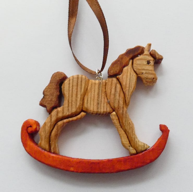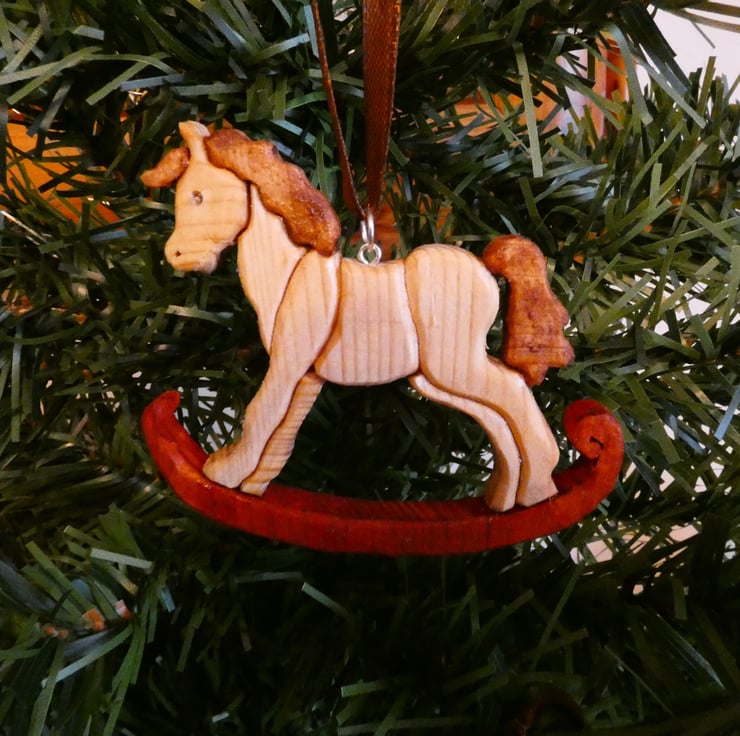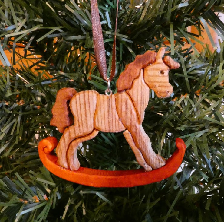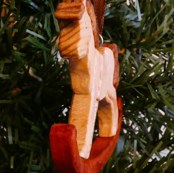 This unusual wooden Rocking Horse Christmas Bauble, has been upcycled from reclaimed wood. This unusual Christmas ornament will make a lovely addition to your Christmas tree. This decoration will make a perfect gift for numerous occasions such as a gift for your sister, a gift for your aunt or a gift for your sister-in-law.