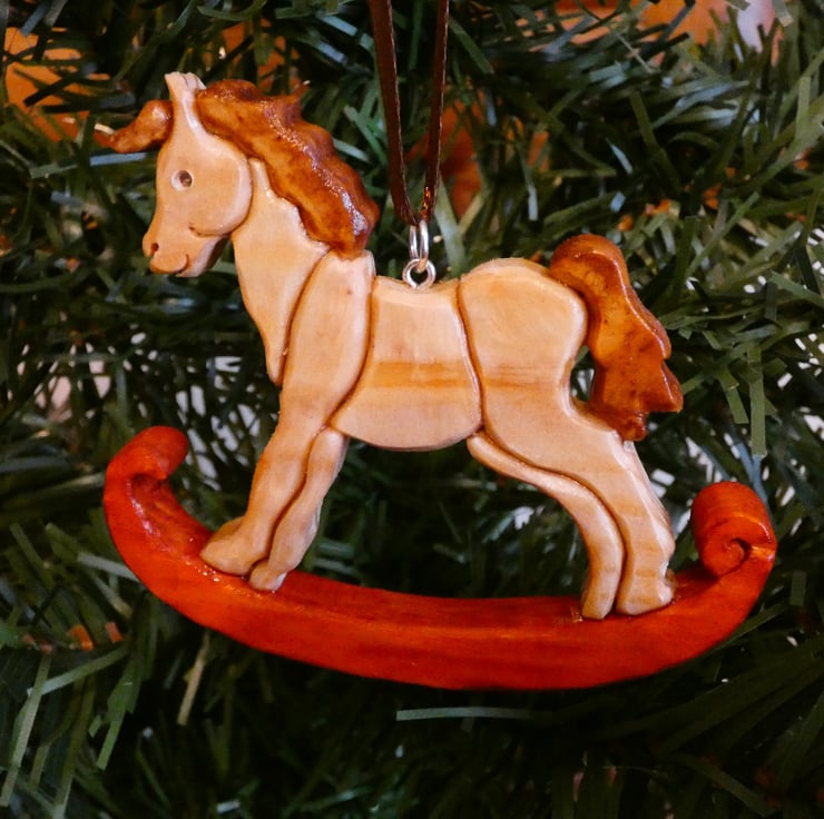 This unusual wooden Rocking Horse Christmas Bauble, has been upcycled from reclaimed wood. This unusual Christmas Decoration will make a lovely addition to your Christmas tree. This decoration will make a perfect gift for numerous occasions such as a best friend gift, a gift for teacher or a gift for mum.