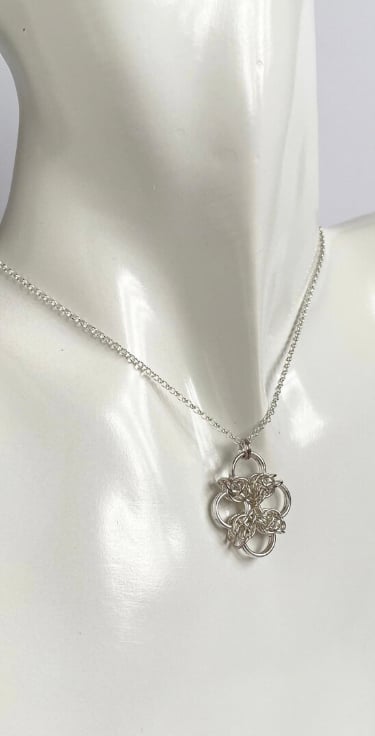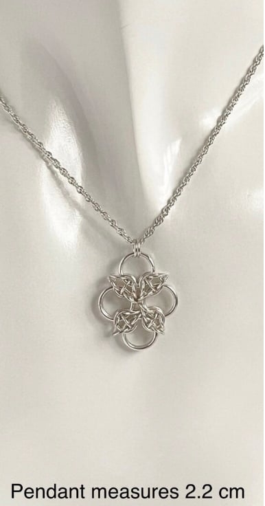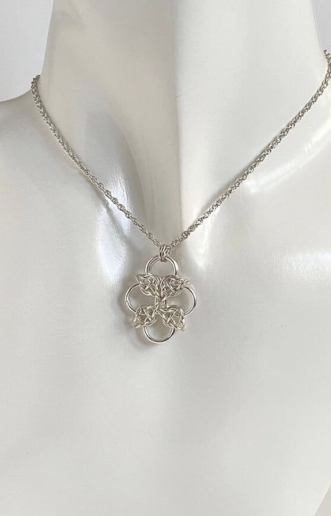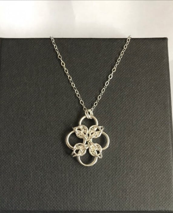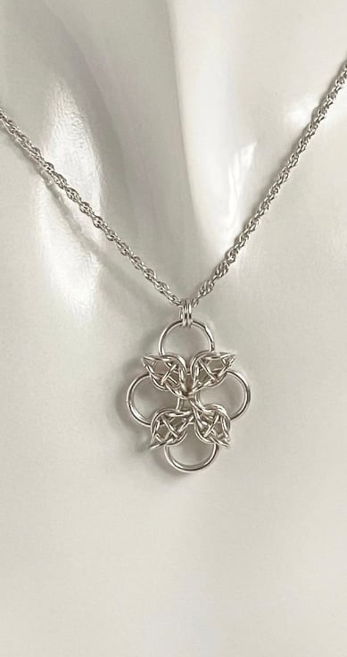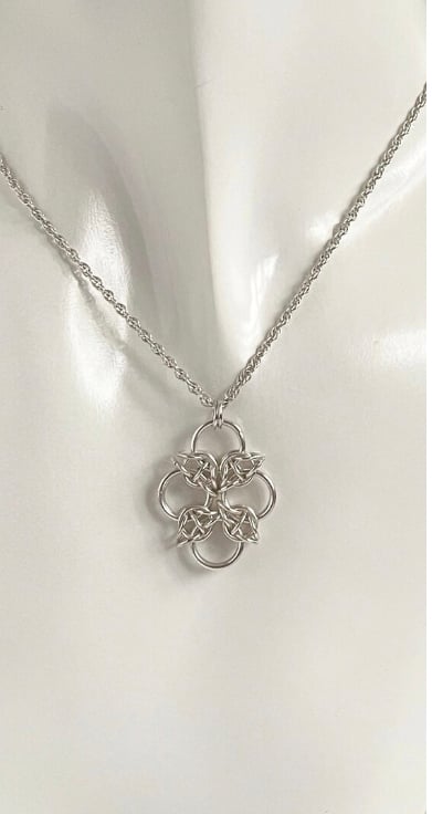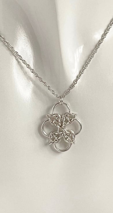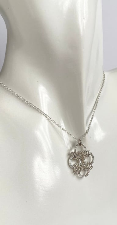 The sterling silver rings have been carefully linked together to form this lovely chainmaille pendant.