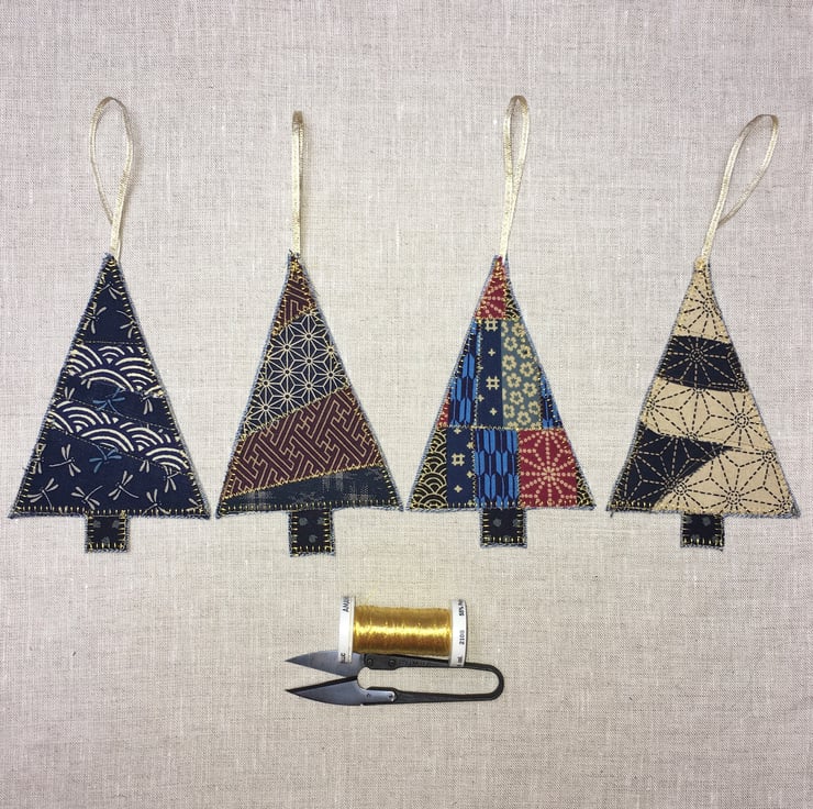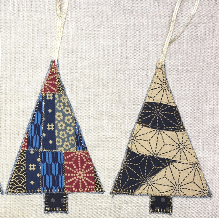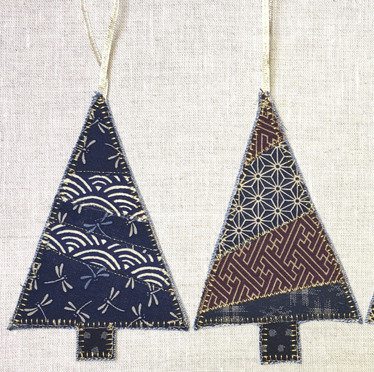 These Christmas tree decorations have been created from pieces of Japanese fabric left over from other projects.