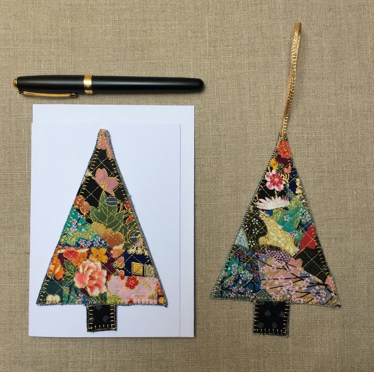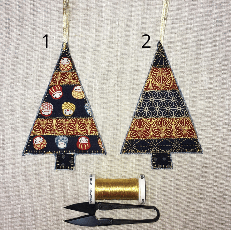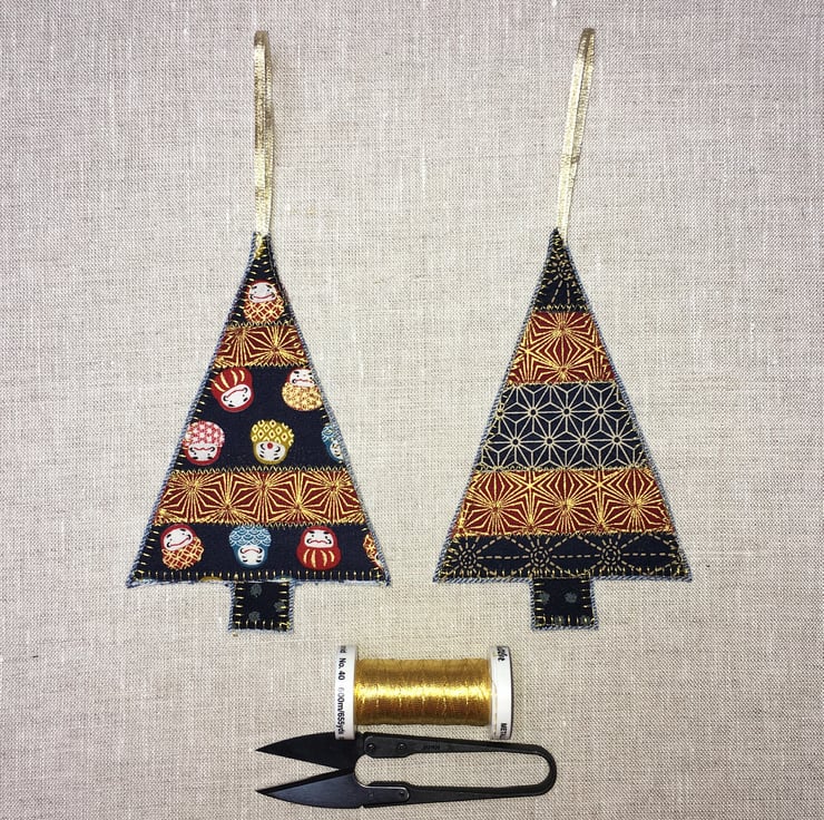 These Christmas tree decorations have been created from pieces of Japanese fabric left over from other projects.