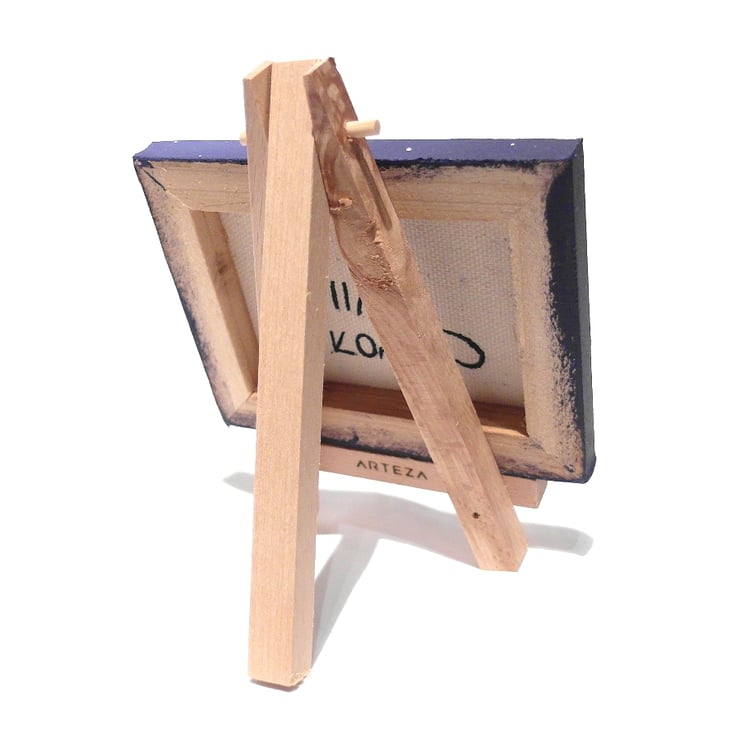 The whimsical night scene will either come with a 14cm (5.5") wooden easel to display the bat painting on, or will be strung with a ribbon in a colour that matches the painting so it can be hung on a wall (as in the last photo). Just choose with easel or ribbon hanging when you buy.