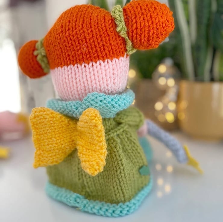You can use any chunky weight yarn to knit these dolls, the yarns used in our examples are Stylecraft Special Chunky in Pistachio, Paintbox Yarns Simply Chunky in Ballet Pink, Blood Orange, White and Bubblegum Pink, Cygnet Kiddies Supersoft Chunky in Clover and King Cole Big Value Chunky in Yellow.