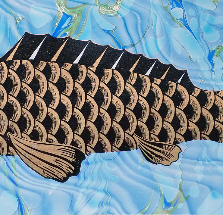I can't claim to be anywhere near that standard of print making but the carp in my print is a nod to that particular flying fish.