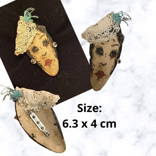 This woman's face brooch looks great on a jumper, jacket shirt in fact any item of clothing or even a handbag