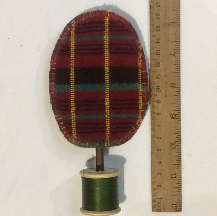 Hand stitched by me on a coordinating vintage cotton reel - this one is dark olive green reel.