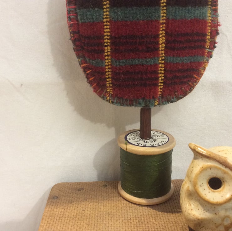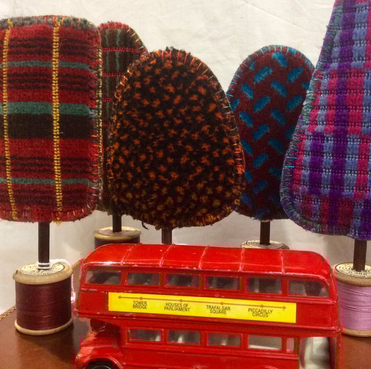I love vintage fabric, and this is so iconic I hoped it would work in my collection of trees making and I think it does. Bold colours and graphic design, contrasting with the hand embroidered trees I make. Something for the vintage transport fan in your life?