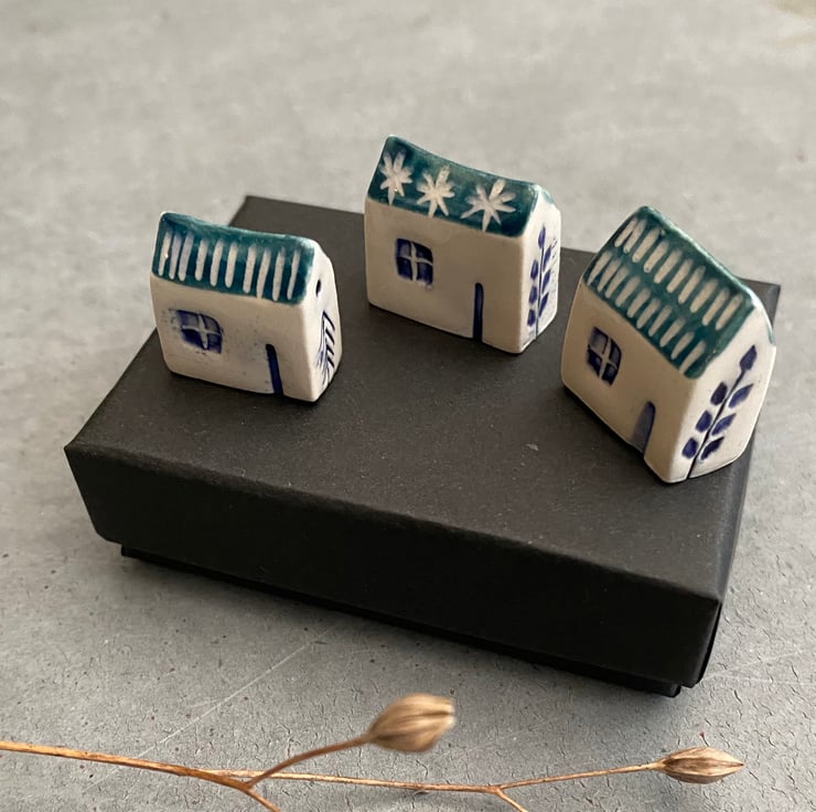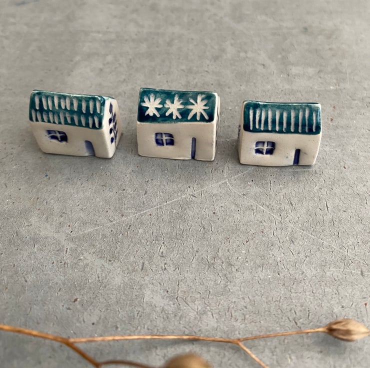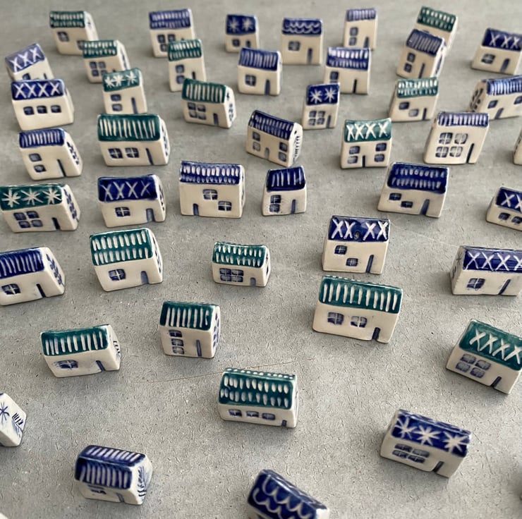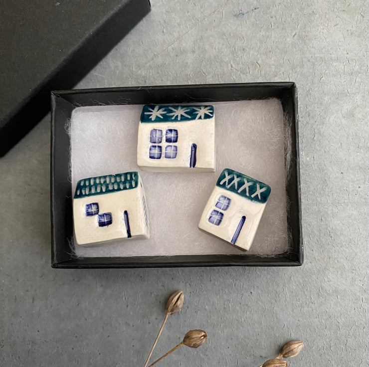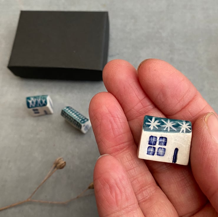 Houses measure between 1cm and 1.5cm tall , 1.5cm and 2cm wide and between 0.5cm and 1cm deep approx .