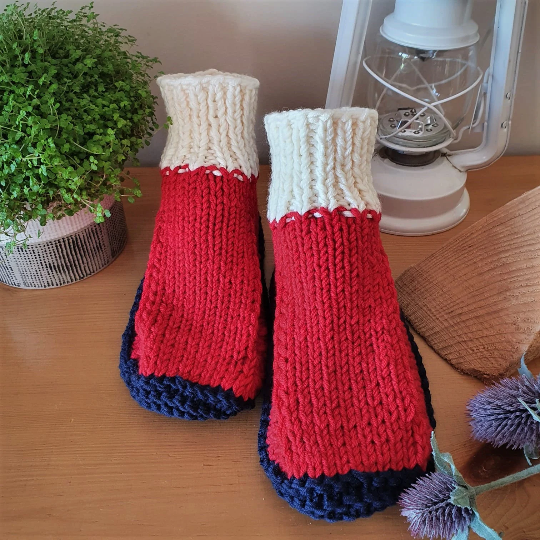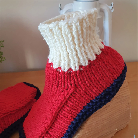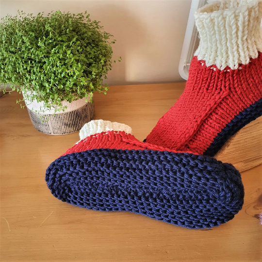Slippers Hand Knitted Super Cosy Dorm Slippers Bed Socks Adults Size 4 - 5 (UK) Red, Off White, Navy Blue Merino Wool Perfect Gift.