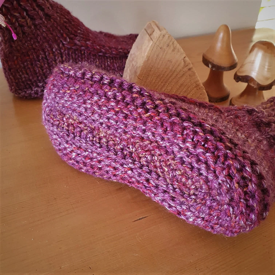 Vegan Hand Knitted Chunky Adult Unisex Slippers Sizes UK 4-5, 5-6, 6-7, Dorm Boots Bed Socks Rich Purple Tones Tweed Effect Yarn Super Cosy.
