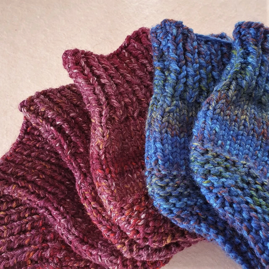 I love how the colourways of the yarn and using two balls at the same time, make each pair of slippers I knit completely unique.