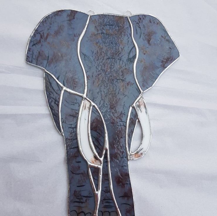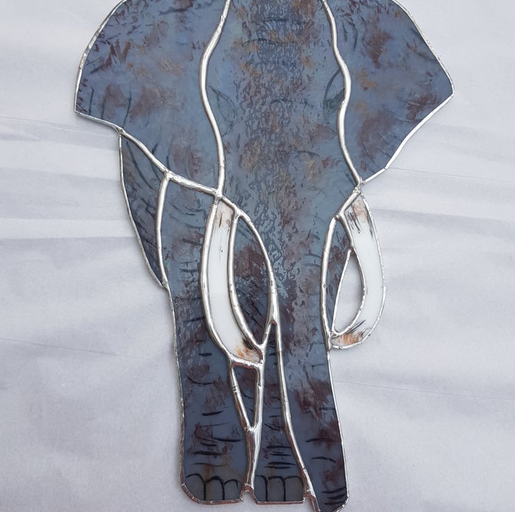 The elephant is the largest land animal. My elephant is hand painted and made using the copper foil technique. Each piece of glass is hand painted and the fired, this can take several firings, in a kiln before being assembled in to the finish piece.
