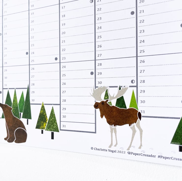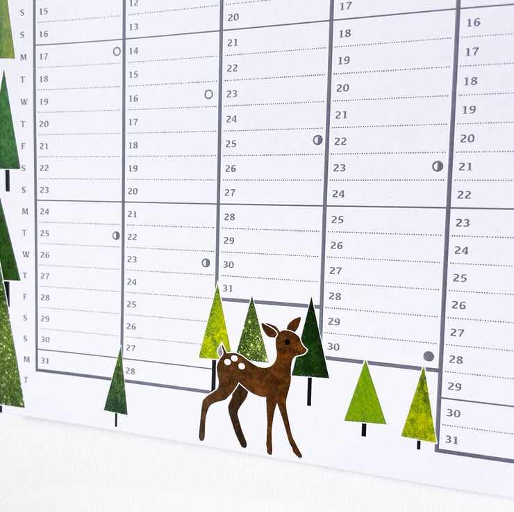 The phases of the moon are depicted with a little circular graphic so that you know when to look out for werewolves. It’s ideal for a work or craft room, a pin-board above a desk, any wall or fridge, your bedroom, your kitchen, your billiards room...