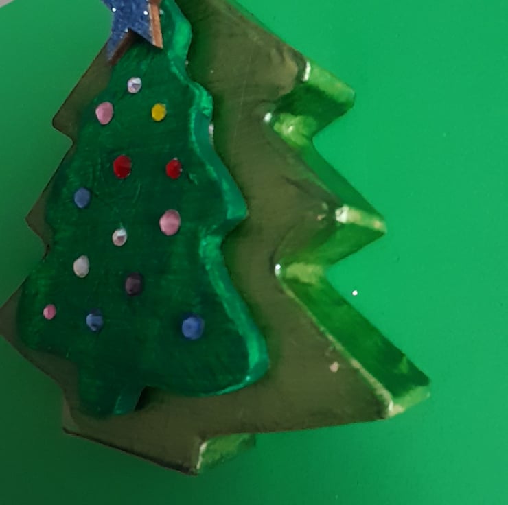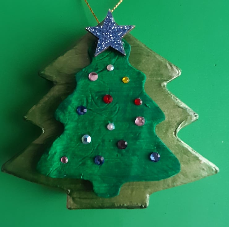Decorated paper mache decoration. Ideal for hanging on a tree or from a shelf / unit.