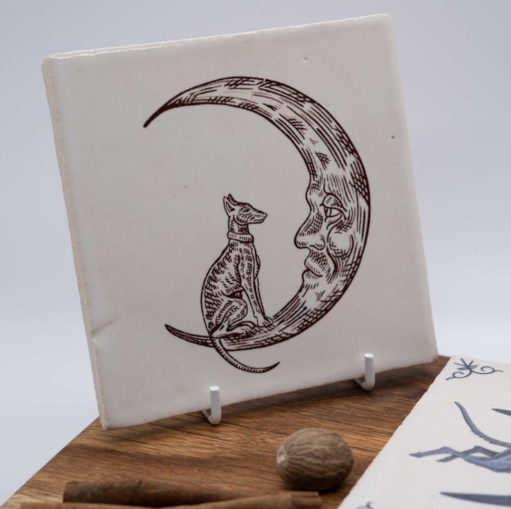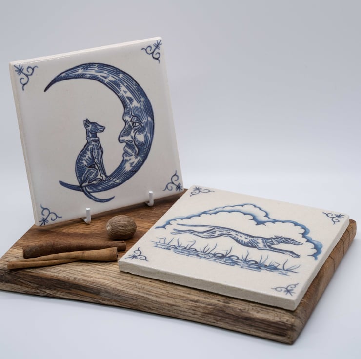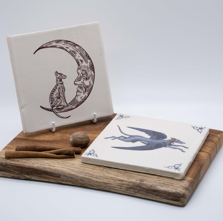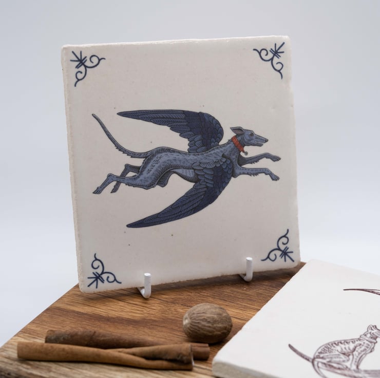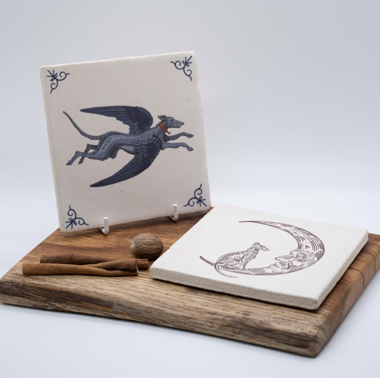 Original watercolours of 'We need to Talk', 'Flying hound' and 'Zoomies' illustrations are from a collaboration with houseofhawks. The images are taken from his original watercolours and fired onto my pottery in a third firing.