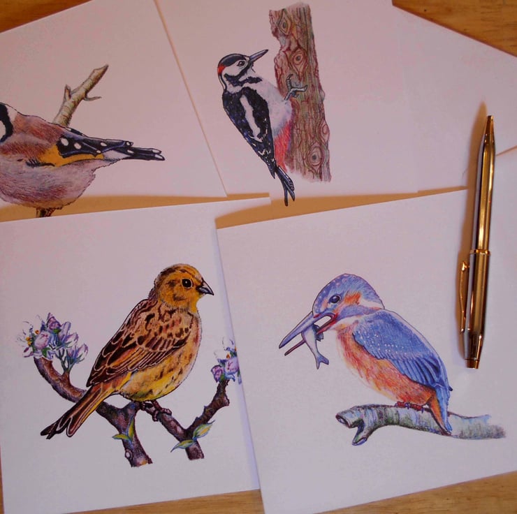 This beautiful Collection of 4 rural bird art cards features designs taken from my handdrawn mixed media Originals.