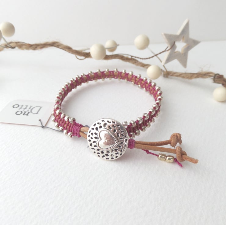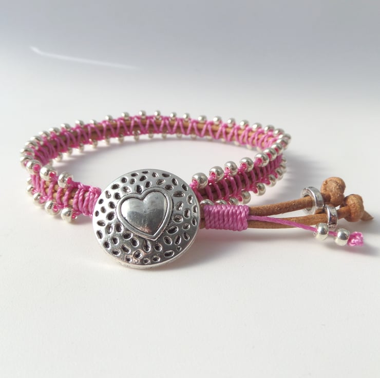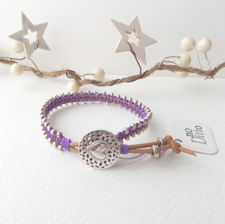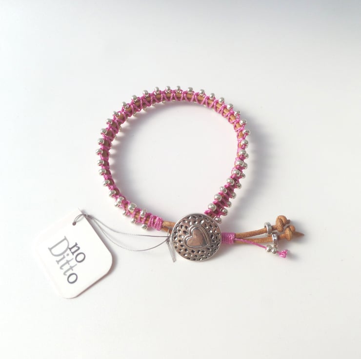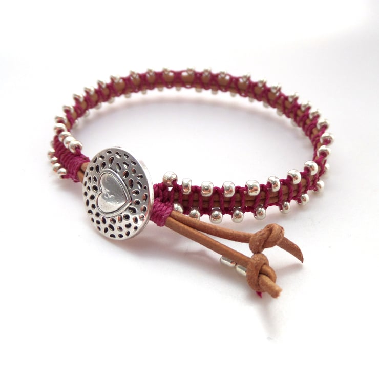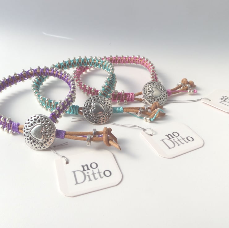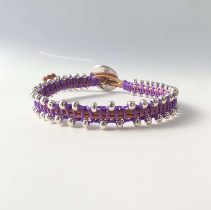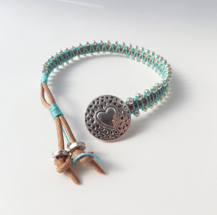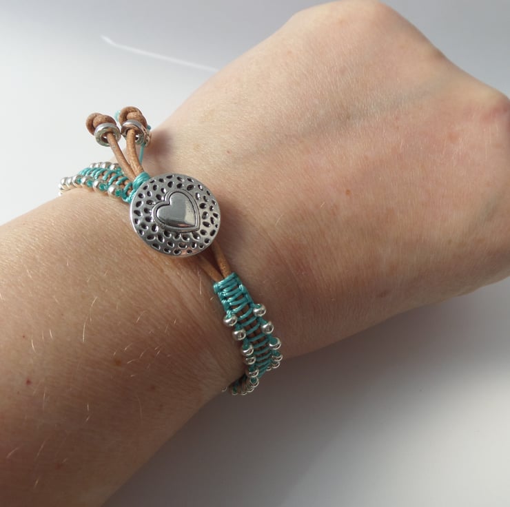 in tan leather cord, with beaded macramé in a choice of colours.