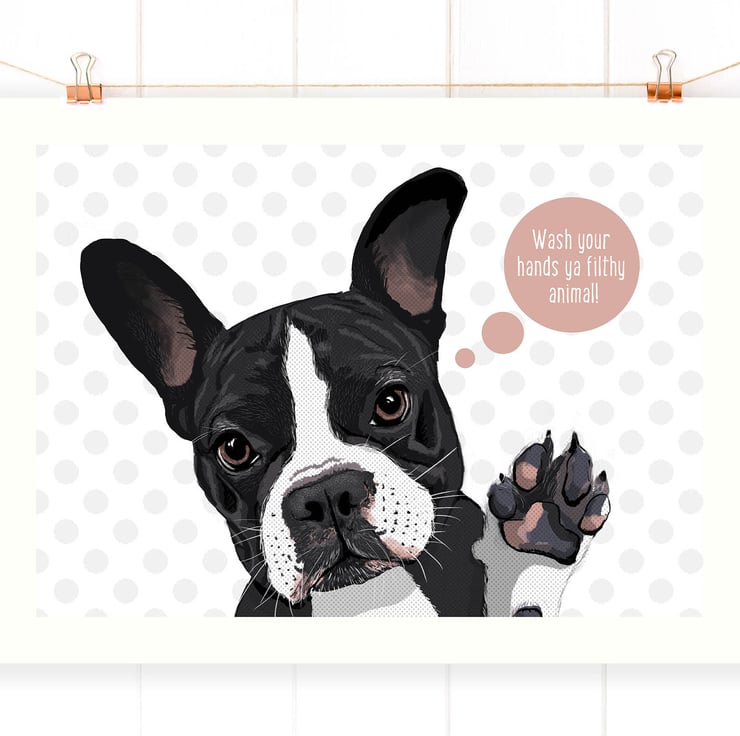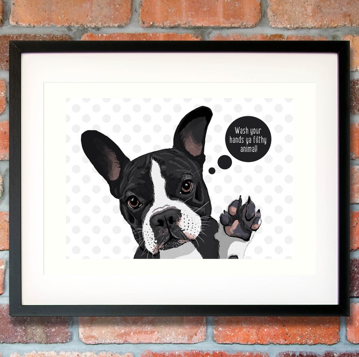 This listing can include the words 'Wash Your hands ya filthy animal' or your own words (please specify when checking out), or if you would prefer just the image with no words at all.