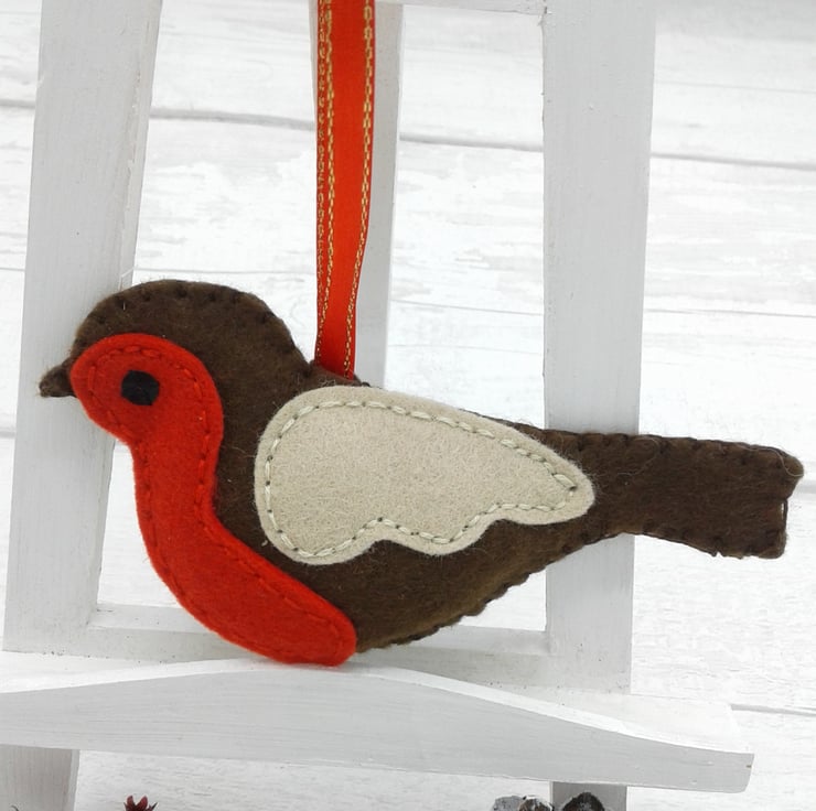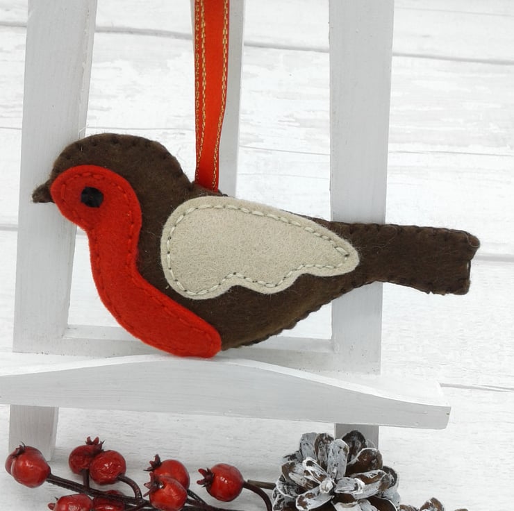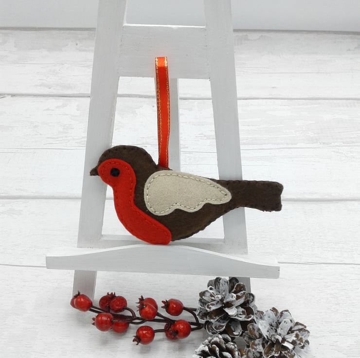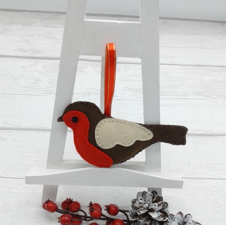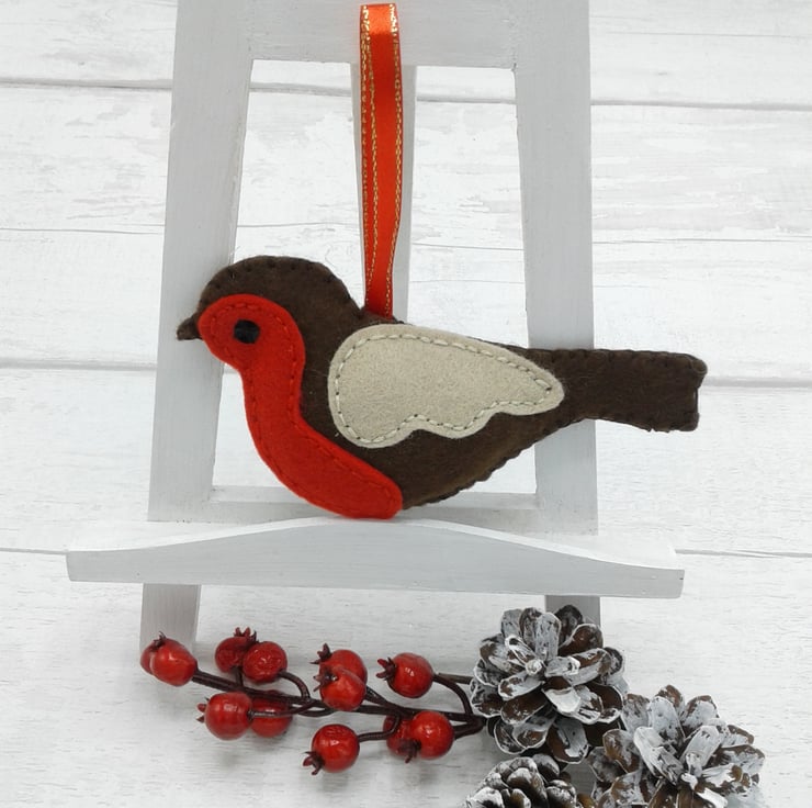 This is a lovely felt robin decoration that would be perfect on any Christmas tree.