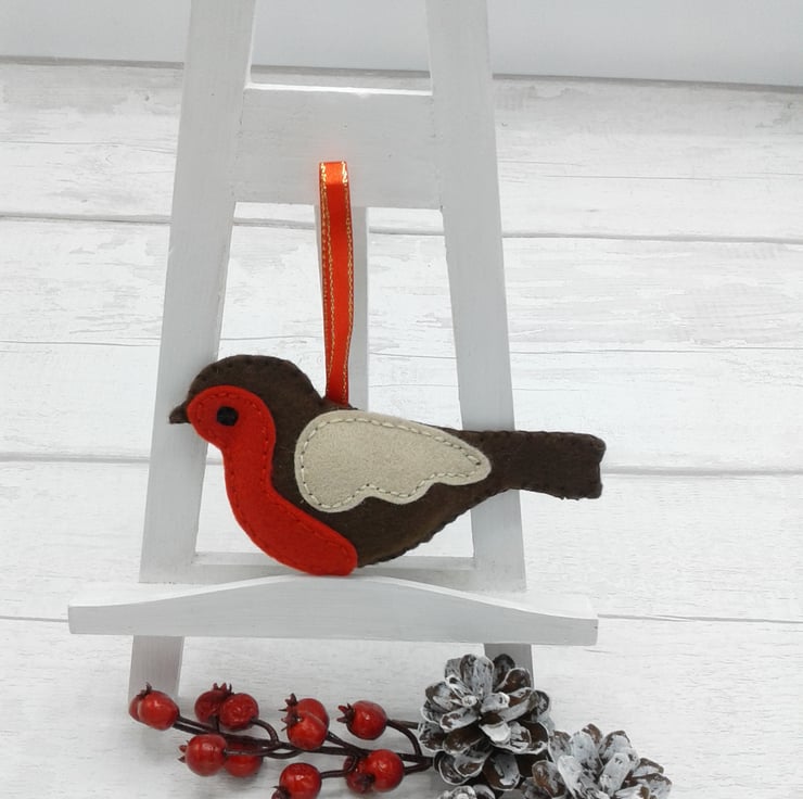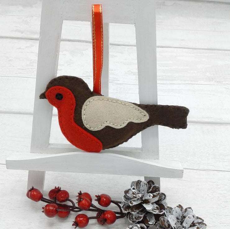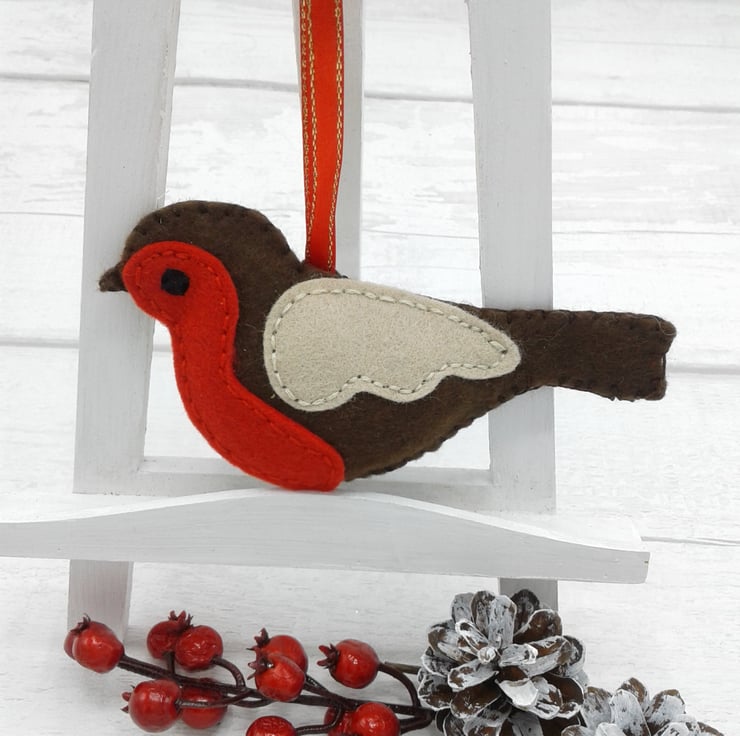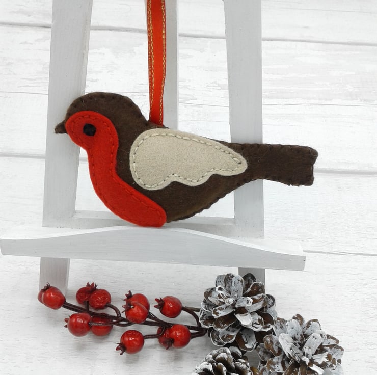 This is a set of 3 felt robin Christmas decorations.