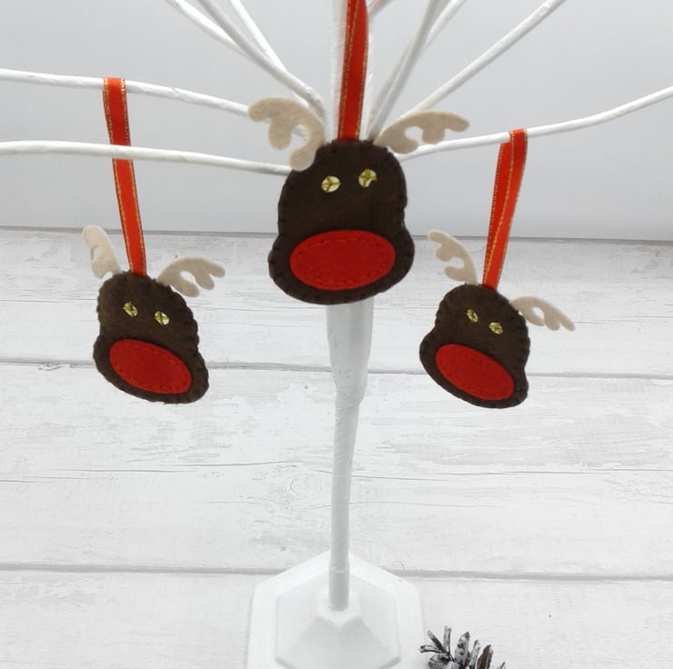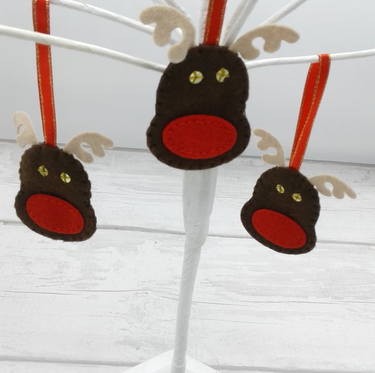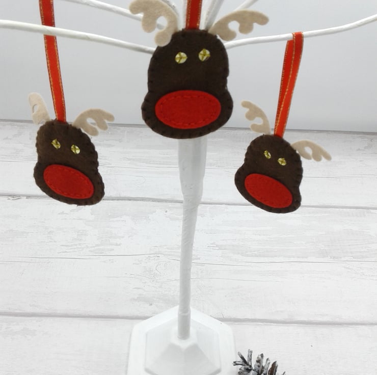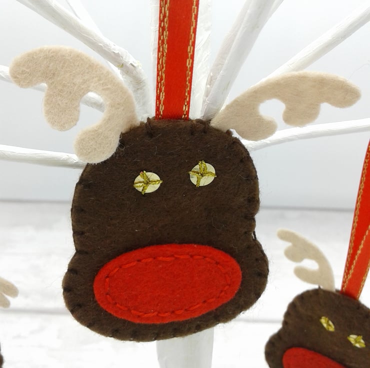 This is a fun set of 5 Rudolph felt decorations.