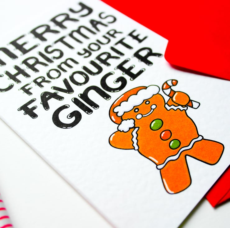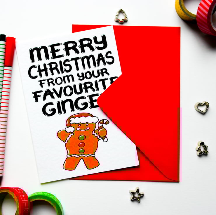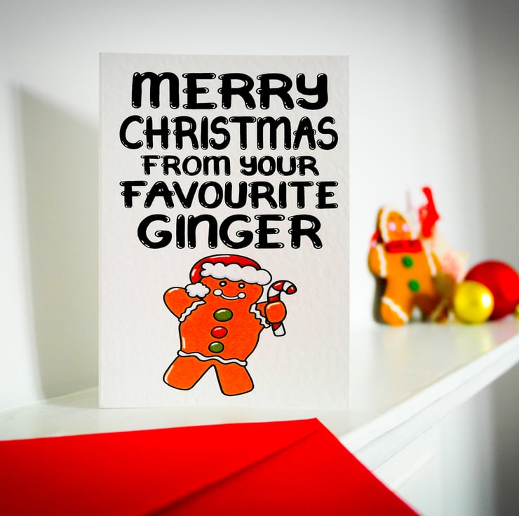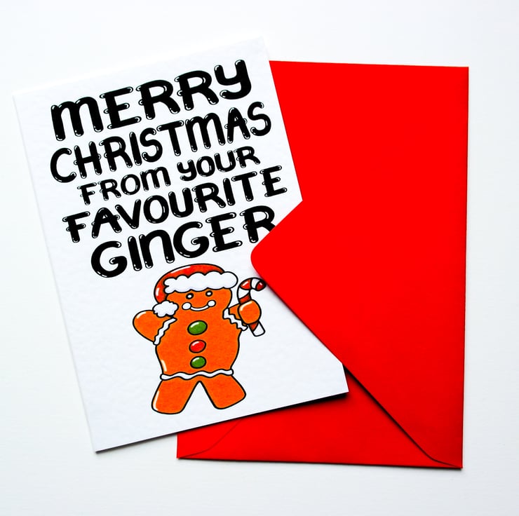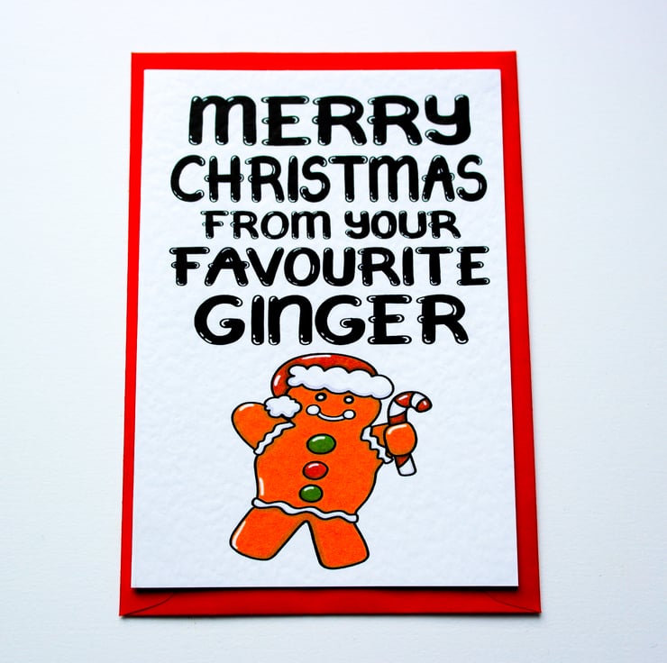 Greeting on front: MERRY CHRISTMAS FROM YOUR FAVOURITE GINGER