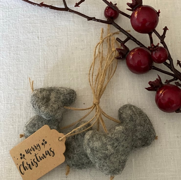 A great alternative to the usual plastic tree decorations, these are 100% natural wool and 100% plastic free.