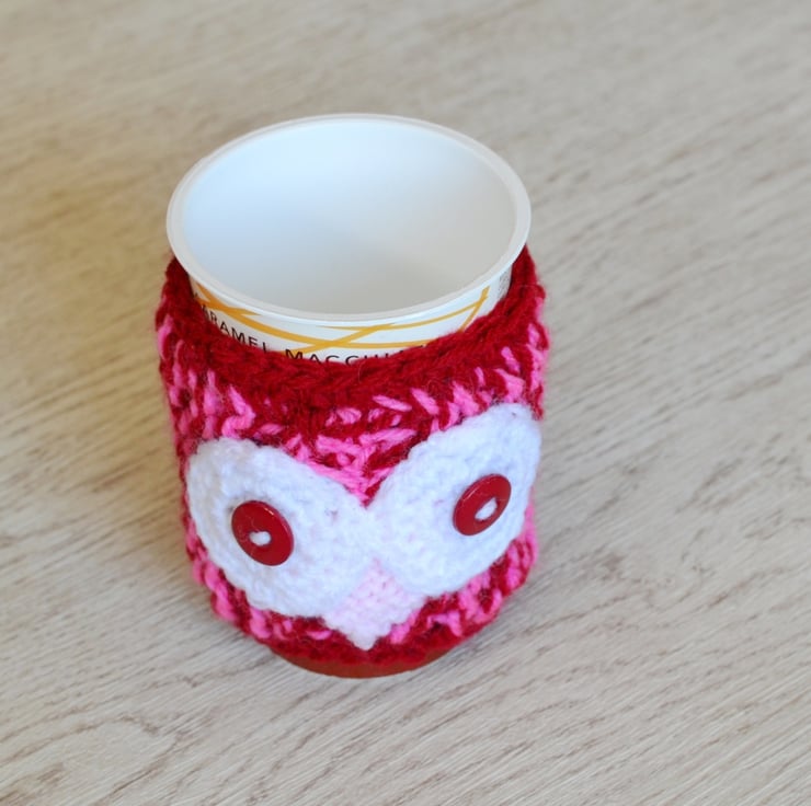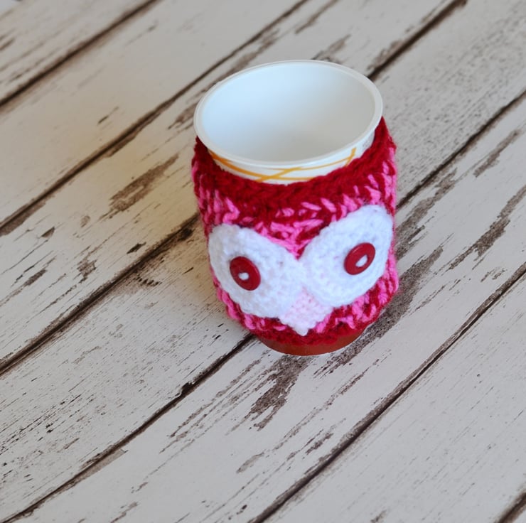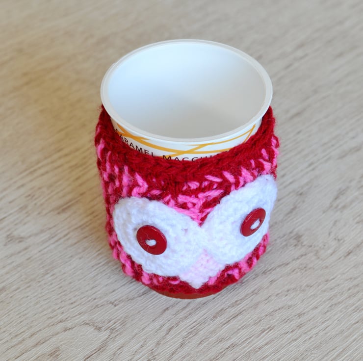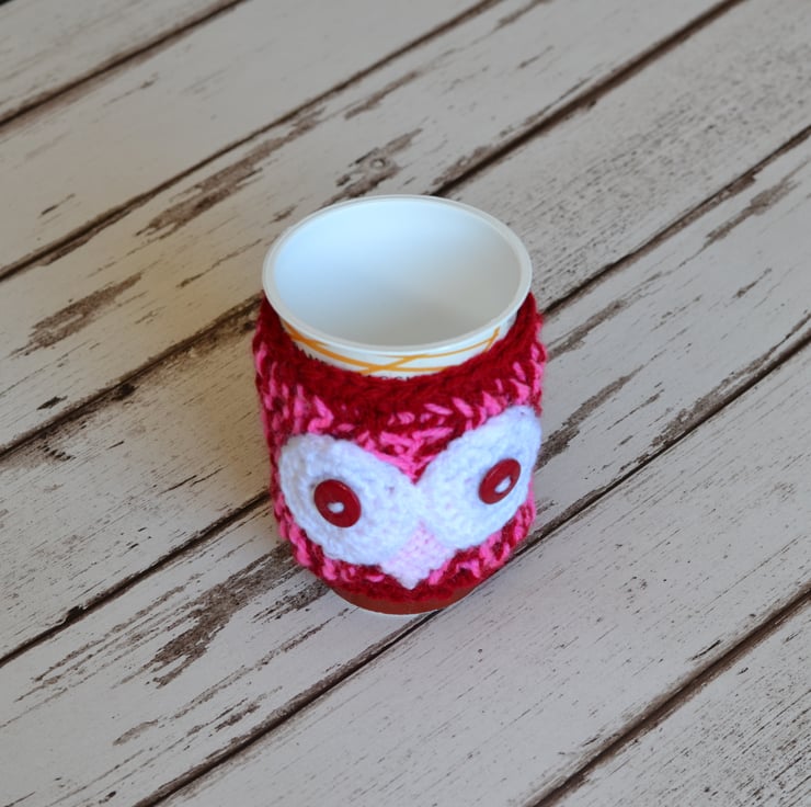I designed this little cosy when my daughter bought me a small sized high street brand coffee shop coffee to try. My hand was cold holding it and thought it could do with a little Crocheted in 100% acrylic cream