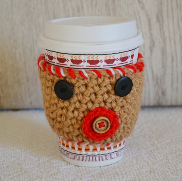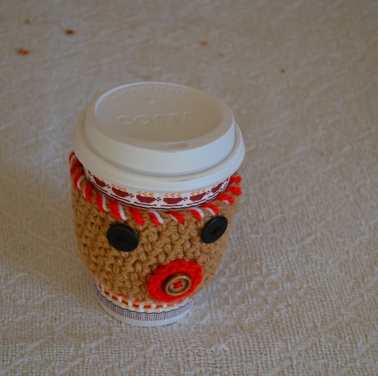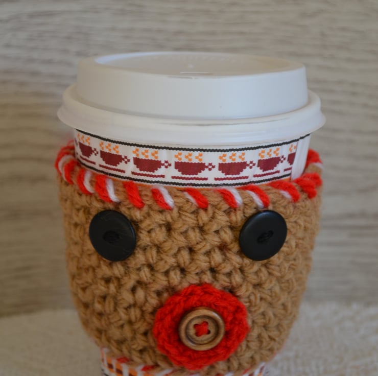 I designed this little cosy when my daughter bought me a small sized high street brand coffee shop coffee to try. My hand was cold holding it and thought it could do with a little Crocheted in 100% acrylic