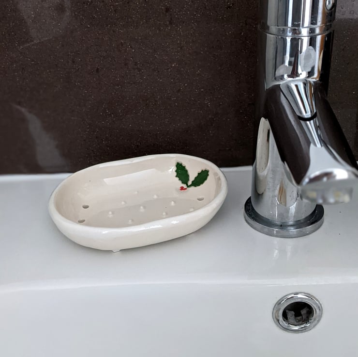 A very special soap dish made for Christmas. This soap dish is handmade and decorated and will bring a touch of Christmas to your kitchen or bathroom, it is ideal if you are trying to move away from the plastic bottles of liquid soap and could be paired with a beautifully scented handmake soap, from a local seller, for an eco-friendly bathroom.
