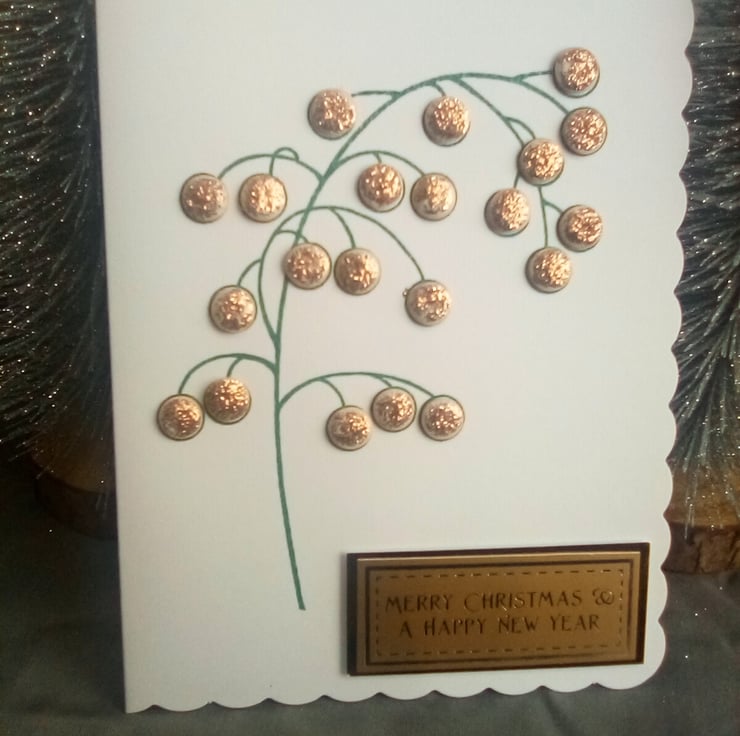 The front sentiment reads, Merry Christmas and A Happy New Year. The inside of the card is left blank for your own greeting.