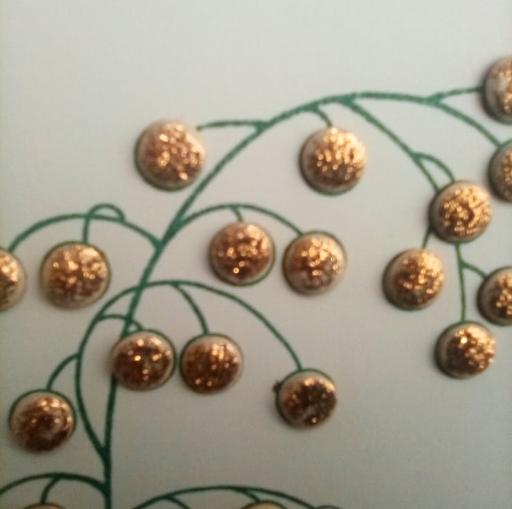 Embellished by hand with punched paper pieces and sparkly glitter glue.