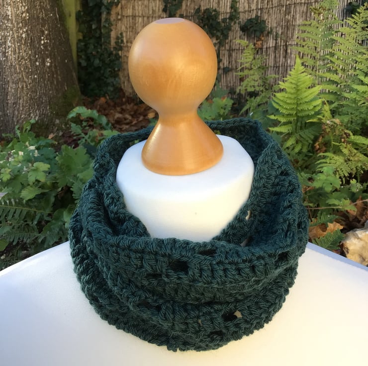 This snood / neck warmer / scarf pulls over the head and will keep your neck lovely and warm. It looks great tucked under a coat or jacket or worn over a jumper. Easy to pop a snood into your bag “ just in case”.