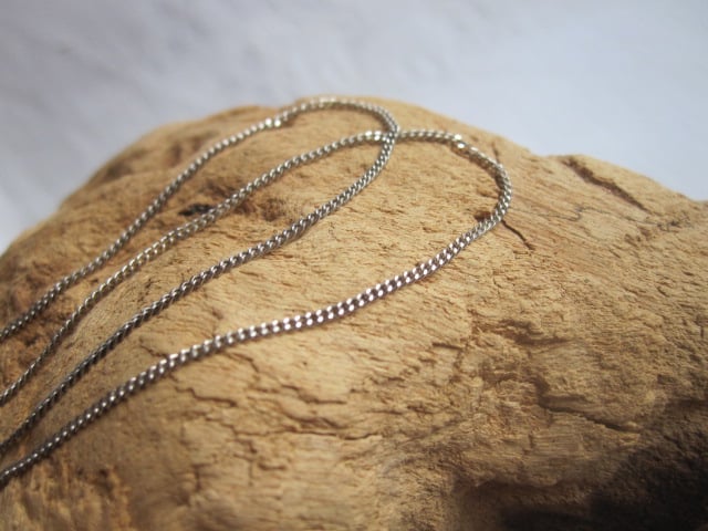 A teardrop shaped Lapis Lazuli pendant with a sterling silver bail and chain. The chain has a bolt clasp and it's length is approx. 18 inches in length. The pendant is fairly light weight and the chain is quite fine. This pendant will come in an organza bag.