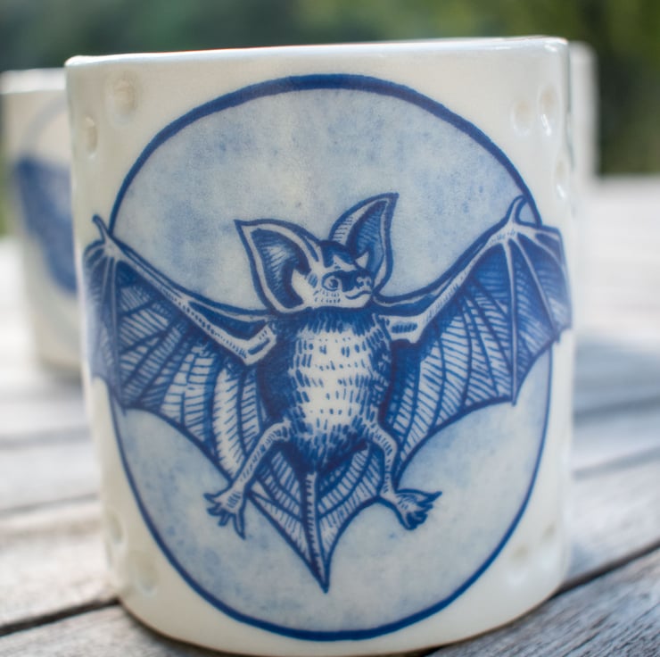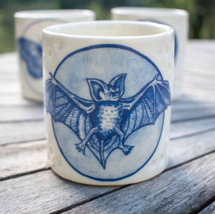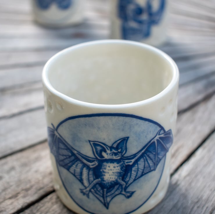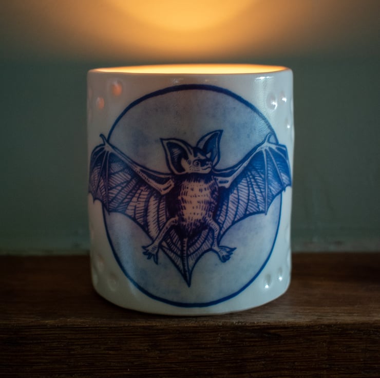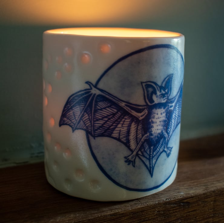 Handmade Porcelain Votive - with Bat illustration