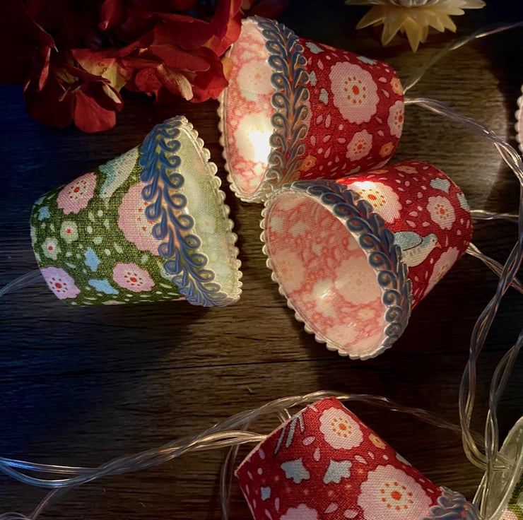 I also do custom lights to order, and I can even use your own special fabric, so please contact me if you would like a particular colour combination to fit with your decor, or have a specific fabric in mind. Just remember that these are mini lampshades, so the prints I use have to be mini too!