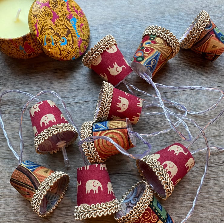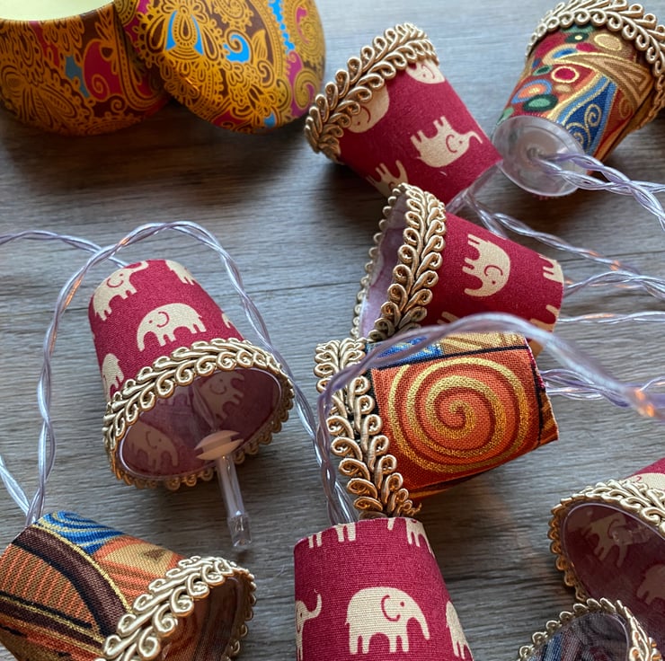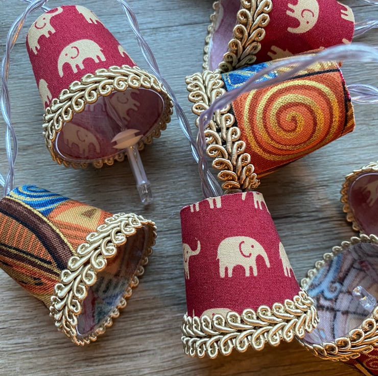 I also do custom lights to order, and I can even use your own special fabric, so please contact me if you would like a particular colour combination to fit with your decor, or have a specific fabric in mind. Just remember that these are mini lampshades, so the prints I use have to be mini too!