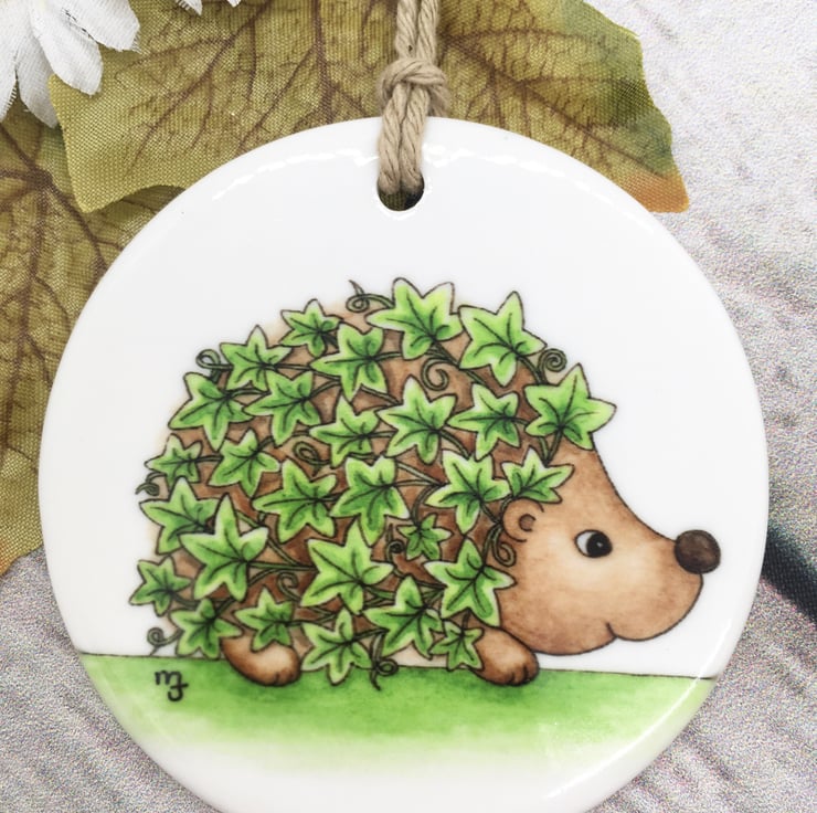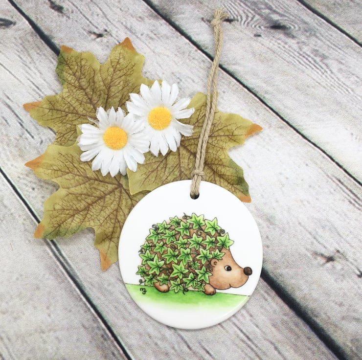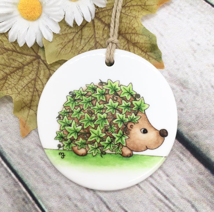 This cute hedgehog ceramic hanging decorations has been professionally printed, featuring my own original artwork.