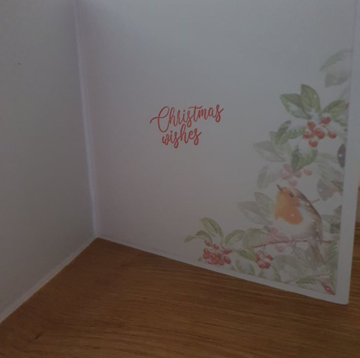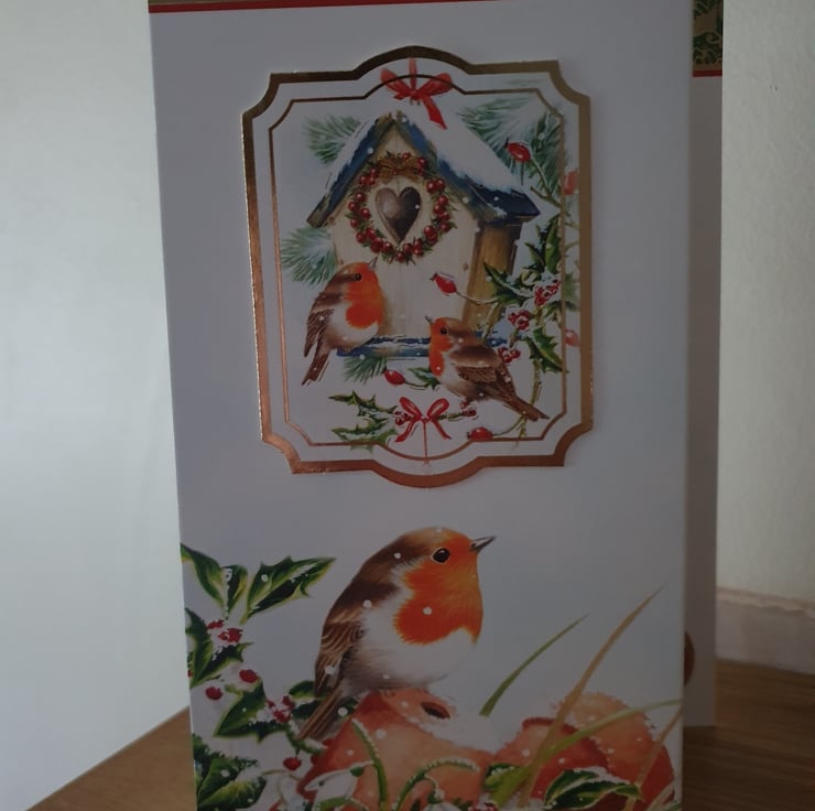 6 high quality Christmas cards featuring robins, these cards are all individual and have an insert with a Christmas message inside, and 1 is a trifold cold, all unique and suitable for your special cards this year. Each is supplied with an envelope.