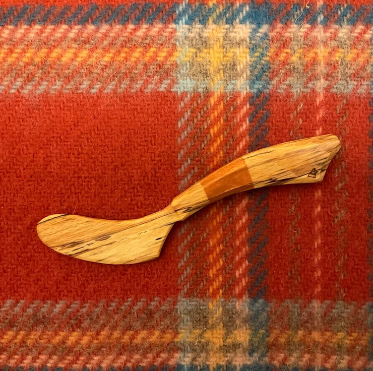 A curvy spalted beech wood soft cheese knife/spreader- perfect for soft cheeses and also spreading butter, jam or anything else you choose. A band of the handle is finished in a warm pumpkin orange shade of milk paint, from the Old Fashioned Milk Paint range. However you use it, it is sure to brighten up your day!