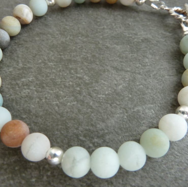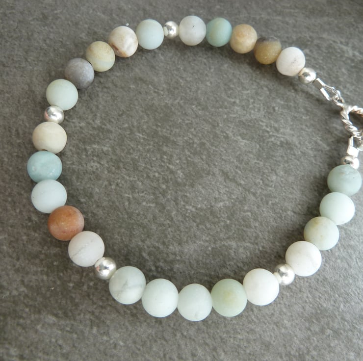 A bracelet which features sterling silver beads strung with Andean Opal gemstone beads.
