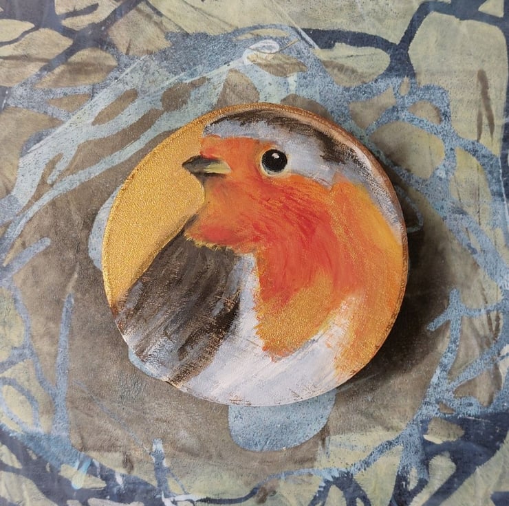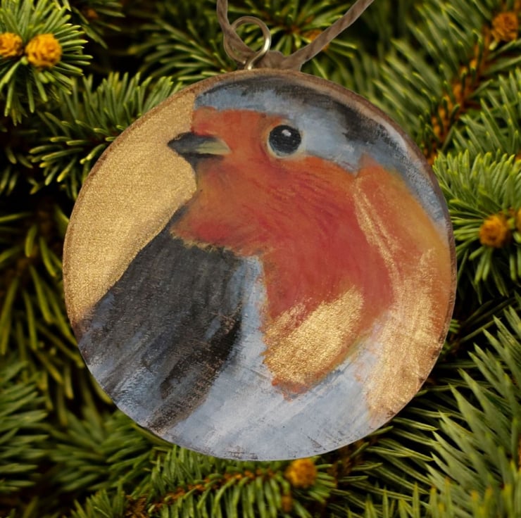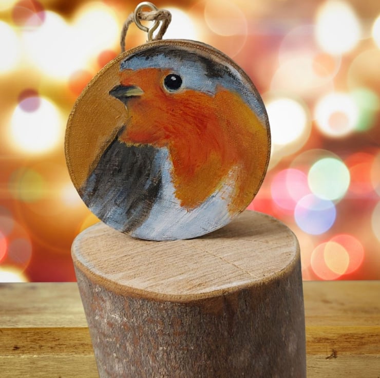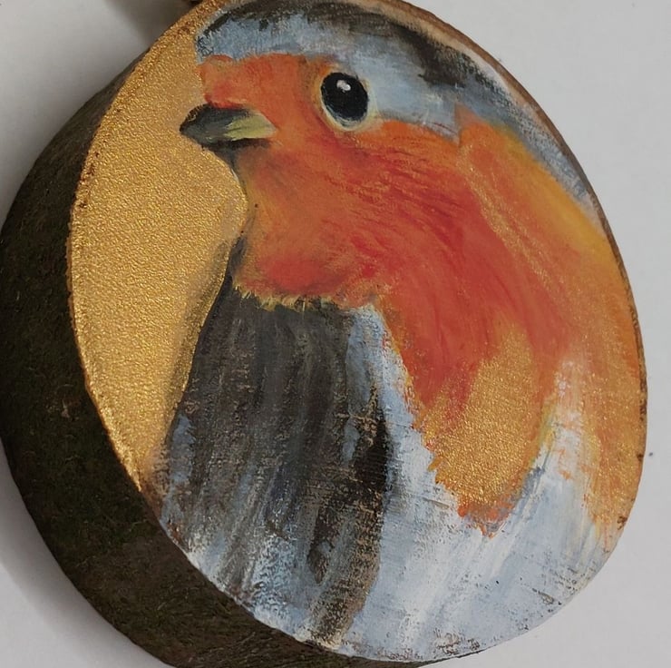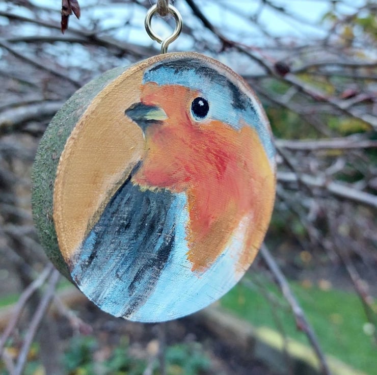 This little robin has been hand painted on to a genuine wood slice cut and sanded by me. Many wood slices are mass produced and imported. This is from wood given to me by a local gardener so no carbon footprint!