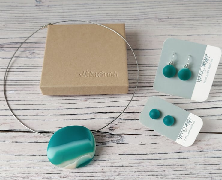 I have matching teal fused glass earrings in both a drop earring and a stud if you would like to make a set - if so, please choose the required option on checkout.