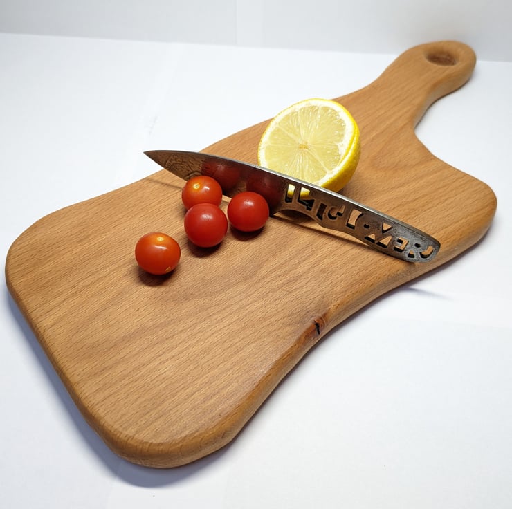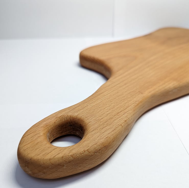 This is a handmade chopping board (or alternatively, decorative serving platter) made from stunning beech wood. Naturally antibacterial, beech is a classic choice for kitchen items such as rolling pins, chopping boards and wooden spoons. This is completely made from scratch by myself using small power tools and hand tools, with the design simply coming as I work on the wood.