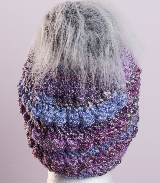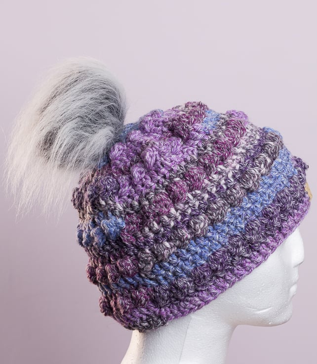 I have also hand made the pompom from faux fur material. I decided to make my own after reading reports that some faux fur pompoms sold on the high street were shown to contain animal fur. By making them myself I can see the back of the fabric structure and can see it is not an animal product. It is stuffed with acrylic toy stuffing.